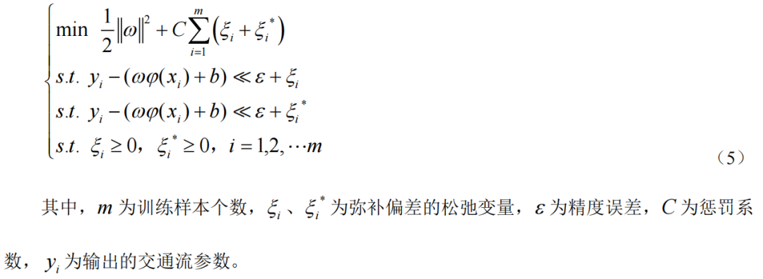 為非線性核函數(shù),b為偏差項,f(x)為交通流的預(yù)測值。轉(zhuǎn)換SVR模型為: